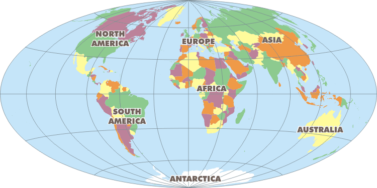 THE CURRENT WORLD MAP AND ITS CONTINENTS